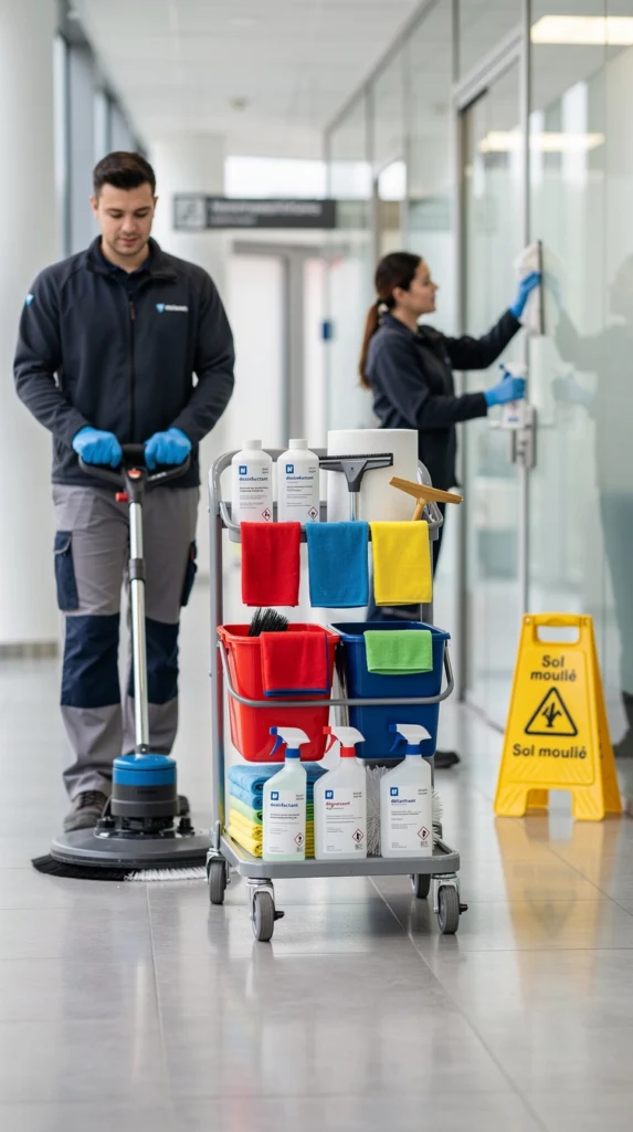 Le recours à un prestataire spécialisé permet également d’accéder à du matériel et à des produits de nettoyage professionnels souvent plus performants que les équipements standards. Ces outils sont conçus pour optimiser l’efficacité des interventions tout en réduisant le temps nécessaire pour traiter les surfaces. Parmi les équipements et solutions fréquemment utilisés, on retrouve notamment :